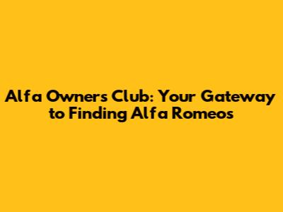 Alfa Owners Club: Your Gateway To Finding Alfa Romeos