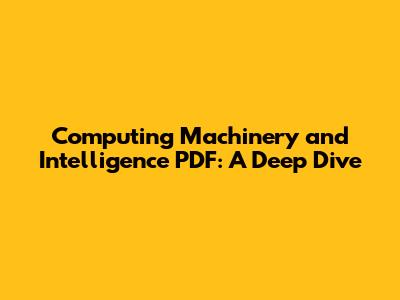 Computing Machinery And Intelligence PDF: A Deep Dive