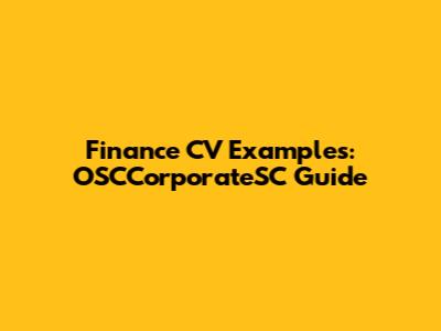 Finance CV Examples: OSCCorporateSC Guide