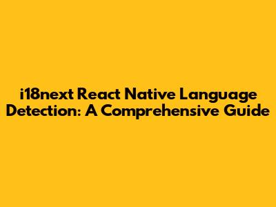 I18next React Native Language Detection: A Comprehensive Guide