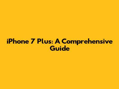 IPhone 7 Plus: A Comprehensive Guide