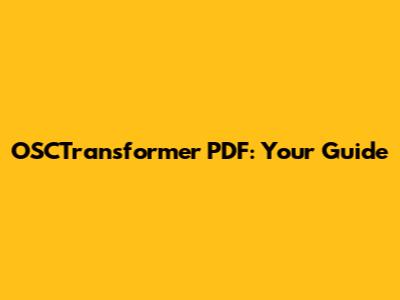 OSCTransformer PDF: Your Guide
