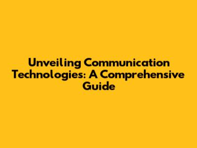 Unveiling Communication Technologies: A Comprehensive Guide